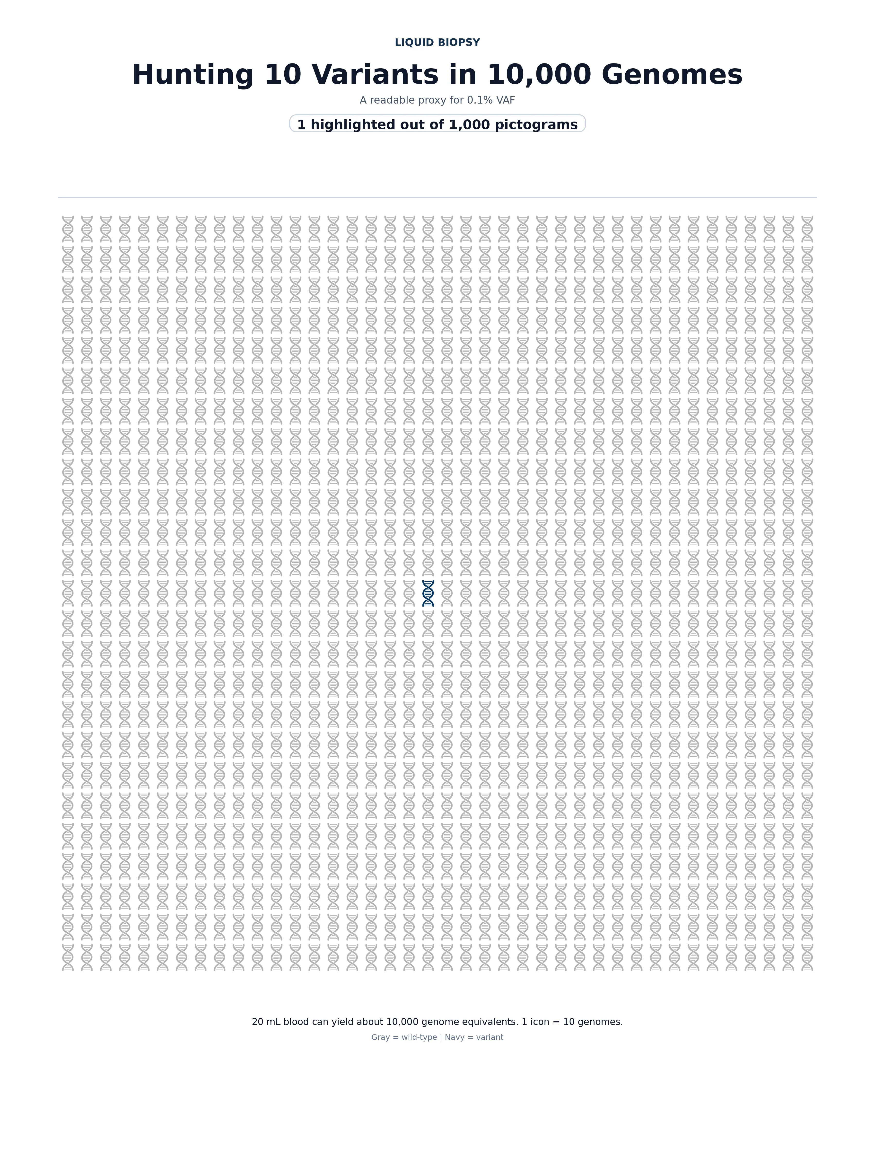 Liquid biopsy in cancer genomics is all about finding a tiny amount of ctDNA, so I wanted to make something that feels like searching for 1 out of 10,000.